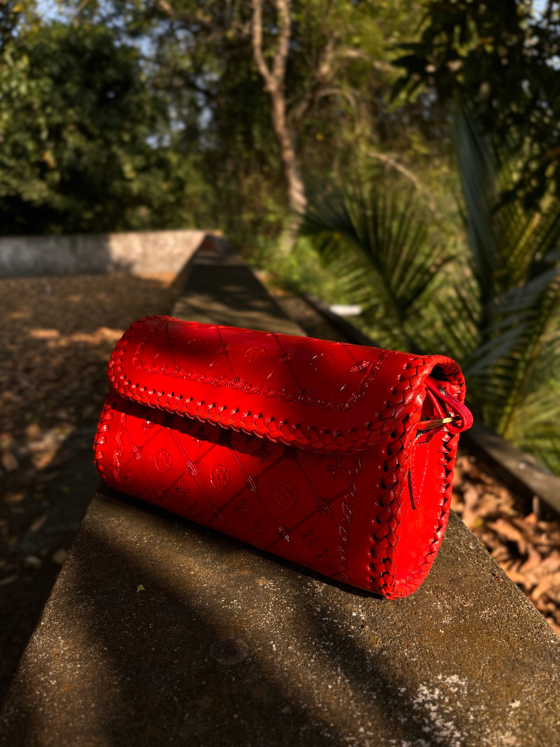 Zygma Hand-Embossed Genuine Red Leather Clutch – Artisan Hand-Stitched Evening Bag