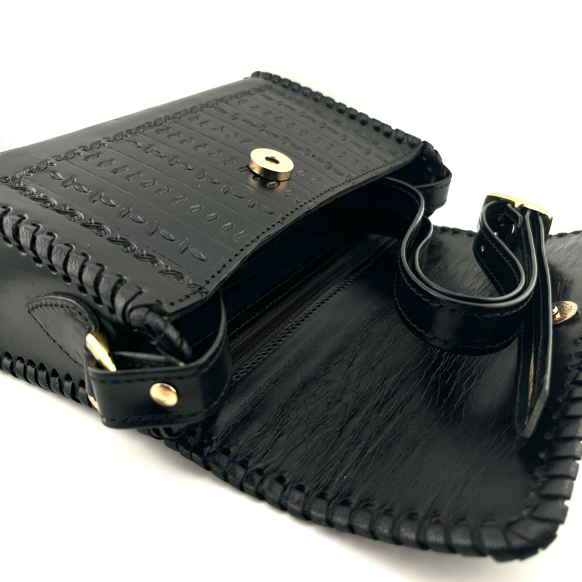 This handcrafted Zygma sling bag is made from genuine full-grain leather, finished in rich black for a refined and versatile look. Built with durable hand-stitched construction, it offers both strength and style for everyday use.