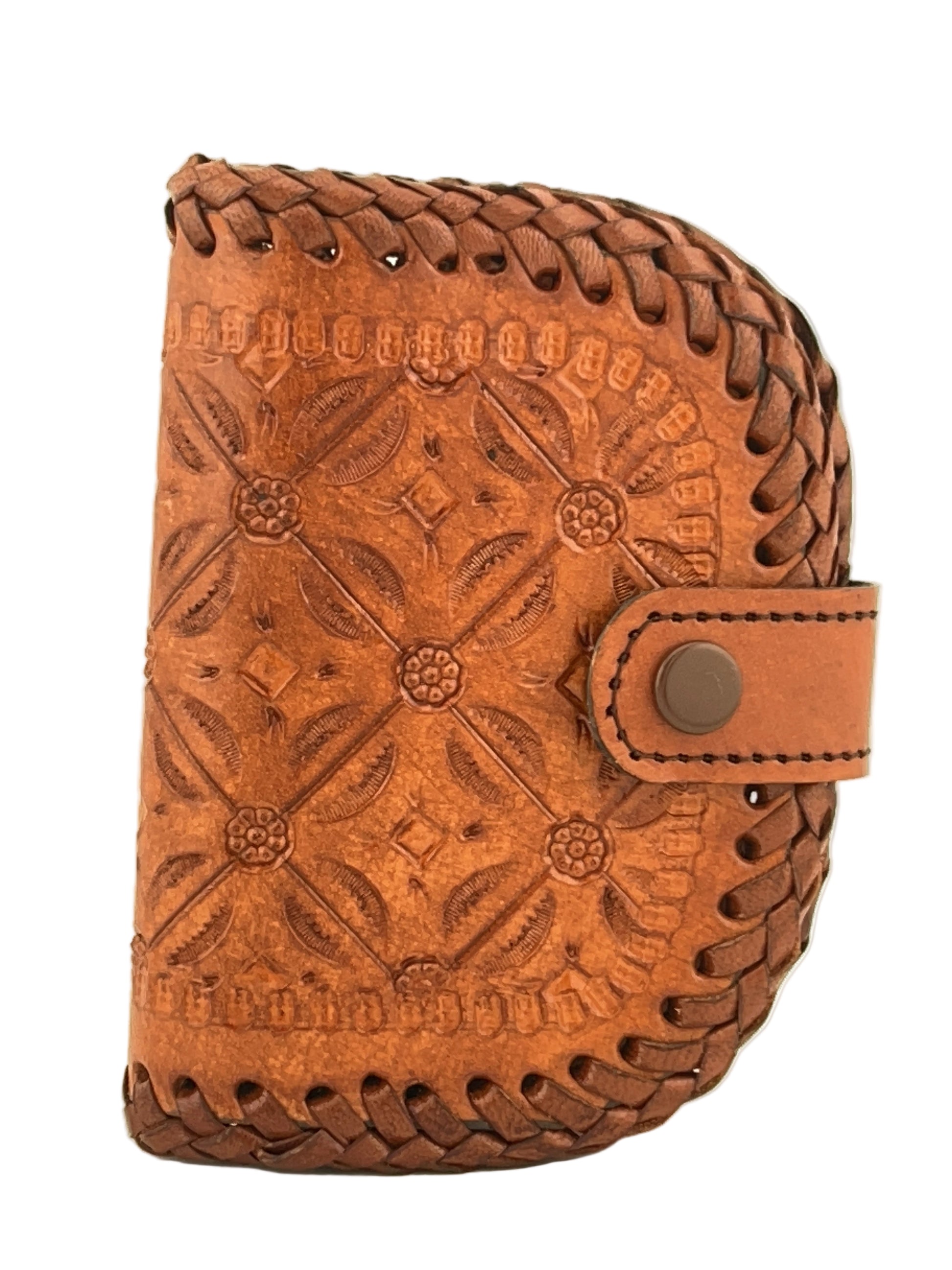 Elevate your everyday essentials with the Zygma Handmade Genuine Leather Women Wallet, crafted from 100% premium leather and finished with intricate hand-tooled patterns. Compact yet spacious, this wallet is designed to keep your cash, cards, and coins perfectly organized. The handcrafted woven edges and secure snap closure add durability and timeless elegance.